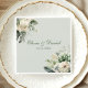 Add a refined botanical touch to your reception with this elegant soft sage green floral wedding napkin. Designed with delicate ivory roses, white ranunculus, and lush eucalyptus greenery, it perfectly complements both rustic and modern wedding themes. The subtle neutral tones make it versatile for garden, boho, or minimalist celebrations. Ideal for creating a cohesive tablescape that feels timeless, natural, and sophisticated. Customize with names or your wedding date for a personalized detail your guests will love.