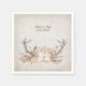 Ramos de veados com buquê de flor de outono sobre fundo macio e castanho. O nome e a data podem ser editados.