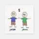Procurando guardanapos de papel divertidos para sua festa de aniversário gêmea? Que tal isto? Cada um deles apresenta um design bonito de duas figuras sorridentes de bastão meninos vestindo camisas azuis e verdes, shorts castanhos e com seus nomes abaixo deles e sua nova idade acima deles.