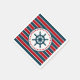 Design náutico com decoração das rodas de vela em forma redonda com estrelas sobre fundo listrado vermelho, azul e branco