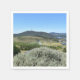 Uma perspectiva cênica do Arboretum de Canberra apresenta uma paisagem verde-luxuosa sob um céu azul claro, com a Montanha Negra erguida por uma torre de comunicação ao fundo. Uma variedade de vegetação, incluindo fileiras de árvores e arbustos, é complementada por um vislumbre de massas de água à distância.