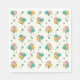 Um Padrão de Dicas de Bebê Rosa em Amarelo, Rosa e Turquesa com Folhas Verdes Caindo em Guardanapos de Papel para Festa