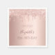 Um guardanapo para uma menina e glamourosa festa de aniversário 16. Um fundo metálico rosa dourado falso com um brilho elegante de rosa dourado, pintura gota-a-gota. O texto: Tempate por um nome escrito em ouro rosa escuro com um grande estilo escrito à mão moderno. Modelos para uma data e 16 anos.