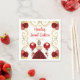 Este doce guardanapo apresenta uma elegante estrutura de ouro, uma bela princesa com cabelo louro e um vestido vermelho, flores e um balão. Isto é perfeito para uma doce festa de aniversário de dezesseis.