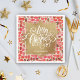 Feliz Natal em letras brancas chicas em uma palha de folha de ouro falsa, esses guardanapos apresentam um fundo de modernos traços vermelhos de pincel e linhas de ouro e pontos e são personalizados com seu nome. MAIS designs na nossa loja.