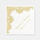 Um intrincado topo de borda falsa de ouro é a atração por este bonito guardanapo de papel de casamento, que é versátil e bonito o suficiente para ser usado em várias ocasiões. Seu texto personalizado está em ouro correspondente. A imagem e o texto são impressos em um fundo branco. *Observe que a imagem é impressa na superfície e não contém nenhum tecido ou local real.*** Criado usando o trabalho de arte da Boutique do Design Digital em http://digitaldesignboutique.com.