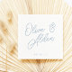Uma bela design de guardanapo de casamento baseada em tipografia, com seus nomes em letras azuis empoeiradas e empoeiradas, com sua data de casamento em letras clássicas de serif.