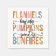 Esta design de outono colorida e divertida apresenta uma lista de favoritos do outono, incluindo "Flannels", "Hayrides", "Pumpkins", "Sweater" e "Bonfire." O texto é apresentado em uma letra em negrito, maiúscula, com cada palavra preenchida com uma tonalidade quente e úmida diferente — que vai de pinks e laranjas moles a verdes e azuis mudos — capturando perfeitamente o espírito confortável e vibrante da estação. As palavras "hayrides" e "suéteres" são escritas num guião fluido, acrescentando um toque de elegância e criando um bom contraste com as letras maiúsculas. A decoração floresce o texto do script, adicionando ao charme geral e ao apelo. Este design é perfeito para o outono.