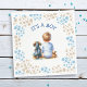 É um menino! Os guardanapos de papel chá de fraldas do menino azul e marrom. Um menino de aquarela bonito e um Dachshund Puppy ao seu lado. Chá de fraldas bonito de bebês e cães.
