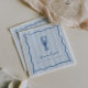 Nossos guardanapos de lagosta são perfeitos para sua celebração à beira-mar! O design litoral cerâmico apresenta uma inscrição azul-mediterrânea e ilustrações sobre um fundo azul-claro de faixa de cabana. Um rabisco de lagosta desenhado à mão senta-se sobre duas linhas de texto personalizado, todas moldadas por uma borda ondulada de rosca. Mostrada com "ela é uma pegada" e a noiva é o nome.