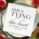 Esses guardanapos "She's Tying the Knot" preto e branco para chá de noiva são um adição elegante e prática à sua celebração. Com um design moderno e um toque de elegância, eles são fáceis de personalizar para combinar com o seu estilo único de chá de noiva. Perfeitos para adicionar um toque personalizado ao seu evento, esses guardanapos ajudam a tornar o seu dia especial ainda mais memorável. Criado por CaMiDesigns.