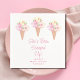 Estes guardanapos de papel de chá de panela com tema de sorvete bonito são decorados com cones e flores de sorvete de aquarela. O texto diz: "Ela foi apanhada!" na tipografia da na moda. Original Watercolor © Michele Davies.
