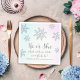 Winter maravilderland temia gênero revelando guardanapos do partido. Estes guardanapos apresentam um belo fundo cor-de-rosa bebê e céu azul, enfeitado com flocos de neve cintilantes prateados a brilhar. O texto "ele ou ela, o que será nosso floco de neve?" está elegantemente impresso nos guardanapos.