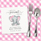 Os guardanapos bonitos para a sua menina chá com "A Sweet Little Peanut Is On Her Way" escrito em uma mistura de tipografia de cinza macia e um roteiro de na moda, e uma aquarela rosa pastel de um elefante bebê. Personalize o nome da futura mãe e a data do chá em uma simples tipografia de cinza.