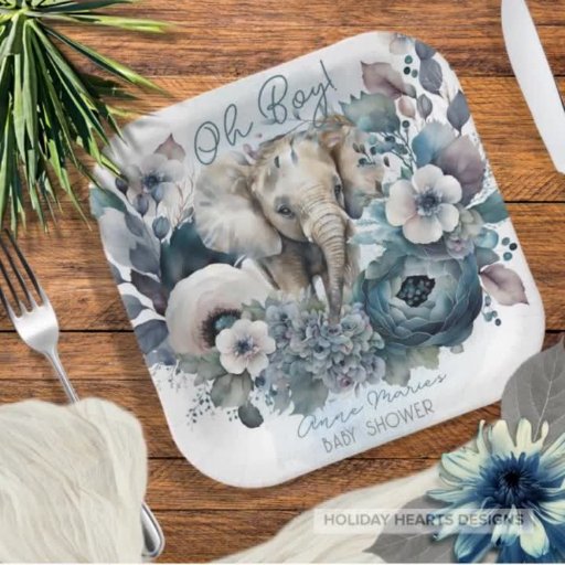 Elephant Oh Boy Blue Floral Baby Shower | SprinkleCriado por Tammy Yargates