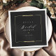 Elegante moldura moderna em dourado falso com conteúdo em fonte script e serifa em fundo preto, simples e sofisticado. Ótimos guardanapos para chá de noiva para casamento moderno clássico, casamento vintage luxuoso e casamento formal simples.