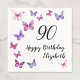 This pretty and elegant 90th birthday cocktail napkin is perfect for a nice party and will set a celebratory tone. The pink and purple butterflies will add a feminine touch to a milestone birthday celebration. Customize the deign with a name to personalize it.