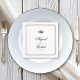 Elegant black and white branch triple border formal wedding paper napkin. Elevate your wedding's reception ambiance with this sophisticated black and white paper napkin. The design showcases a black branch gracefully positioned above your personalized text, all framed within a refined triple black border that enhances its classic appeal.