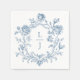 Guardanapo De Papel Elegant Blue Floral Crest Monogram Wedding