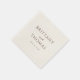 This wedding napkin features a minimalist and elegant design with a clean, uncluttered layout. The color palette is dominated by a rich dark brown hue on a plain background, creating a sophisticated look. Typography plays a central role, using bold serif fonts for the names and a delicate cursive script for "and," enhancing its formal yet personal feel. The generous spacing between lines adds to the refined aesthetic, making it perfect for a timeless and stylish wedding celebration.