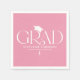 Celebrate your graduate with refined, modern style using these elegant graduation party napkins. Set against a cute pink background, the design features the word “GRAD” in a modern serif typeface, with a stylish graduation cap icon positioned above the “R.” The end of the “R” flows seamlessly into a dangling tassel that runs through the graduate’s name, school, and class year for a cohesive, high-end look.