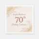 Celebrate 70th birthday with this exquisitely designed rose gold and glitter napkin. Featuring elegant botanical accents and shimmering gold dust effect. Personalize it with any name and age to create a memorable and stylish atmosphere for her special day. Perfect for adding a touch of glamour to your birthday party.