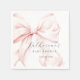 Elegantes guardanapos de papel rosa blush com arco perfeitos para chá de bebê ou chá de panela.