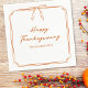 Adicione um toque de elegância à sua mesa de Ação de Graças com este guardanapo refinado com uma delicada fronteira de arco e um roteiro gracioso. Em uma matiz cor de laranja quente e queimada, este guardanapo "Feliz Dia de Ação de Graças" traz um charme sofisticado para o seu decoro de férias. Perfeito para os encontros de Ação de Graças, esses guardanapos oferecem um acréscimo chique às suas mesas, complementando a estética tradicional e moderna. Quer você esteja hospedando um banquete familiar ou um janto íntimo, esses guardanapos adicionam um sotaque festivo mas saboroso, fazer que cada convidado sinta bem-vindo. Personalize-o com nomes ou datas para um toque personalizado.