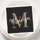 Guardanapo De Papel Elegante Black Dourado Monograma Girly Script Birt