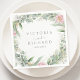 Bonitos guardanapos de casamento com cor-de-água floral rosa eucalipto e folhas de ouro.