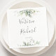 Bonitos guardanapos de casamentos com aquarela eucalipto e folhas de ouro.