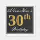 Este simples e elegante design de guardanapo de papel apresenta uma mensagem como "ANameHere's aniversário de 30 anos" (com o "30" a ter uma coloração falsa em ouro) dentro de uma área quadrada de cor preta com um contorno simples de fronteira. O nome está em um texto semelhante a script de cor branca e pode ser personalizado. Napkins como estes poderia talvez ser usado numa festa de aniversário para alguém que comemora seu trigésimo aniversário. [~Z0000136]