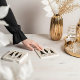 Adicione um toque de elegância moderna às suas comemorações de férias com os nossos guardanapos de papel festivo, com um toque de abstrato em uma sofisticada paleta preta, dourada e branca. Cada árvore é exclusivamente detalhada com diferentes elementos de design dourados, criando uma estética de férias refinada, mas lúdica. Complementado pela graciosa escrita "Fa La" na caligrafia moderna, acrescentando um talento festivo e na moda. Perfeito para festas de Natal, jantas de férias, ou encontros sazonais, esses guardanapos também podem ser personalizados com seu nome, fazer-os de um chic e um reflexo em qualquer mesa de férias. Elaborado por ©Moodthology Papery