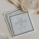 Estes guardanapos de casamento elegantes e velhos guardanapos de dinheiro apresentam uma fronteira verde sábio com uma fina estrutura interior branca e um centro verde mais leve. Há uma mistura de texto clássico e caligrafia moderna para um design clássico e minimalista perfeito para seu eterno, casamento formal.