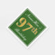 Este simples e elegante design de guardanapo de papel apresenta uma mensagem como "NameHere's 97th Birthday" (com o "97º" a ter uma cor falsa em forma de ouro) dentro de uma área quadrada de cor verde com um contorno de fronteira simples. O nome está em um texto semelhante a script de cor branca e pode ser personalizado. Napkins como estes poderia talvez ser usado numa festa de aniversário para alguém que comemora seu 90° aniversário. [~Z0000137]