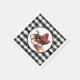 Belos natais vintages adormecem em vermelho vivo e preto, decorados com pacotes em vermelho com fita preta e verificação de búfalos preto e branco. Uma fronteira de controlos de búfalos preto e branco completa o acordo.