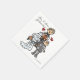 Engraçado Papel Descartável Casamento Napkins mostra o Sr. e a Sra. com o sobrenome da noiva e do noivo junto com a data do evento de casamento. Todas as informações importantes são apresentadas ao lado de um desenho engraçado da noiva e do noivo no alter se casando.