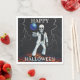 Os guardanapos de papel do Halloween com o texto "halloween feliz" e apresentando um esqueleto dançando em um terno retrô branco de discoteca, com uma bola de disco, eletrificada por raios, e em um chão retrorado laranja dançando. Perfeito para um evento assustador, este design de bash assombrado único dá o tom para uma noite de figurinos, música e movimentos inesquecíveis.