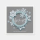 Adicione o estilo contemporâneo às suas festas de férias e encontros com este guardanapo de papel personalizado que deseja todo um "Natal Mérito". As cores são cinzas com texto azul pálido e flocos de neve. Um quadro circular azul circunda o centro do design com sutil sombreamento que dá um efeito tridimensional. Substitua os nomes de exemplo mostrados por seus nomes ou outro texto desejado.
