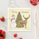 Uma cena de natal alegre de estilo vintage com uma árvore, um boneco de neve e uma rena. Esta design parece realmente eficaz nestes Napkins de Papel