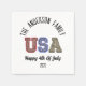 Adicione um toque festivo às suas comemorações de 4 de julho e reunião familiar/ A design apresenta uma bela bandeira americana dos EUA, com vermelho branco e azul, Isto é perfeito para abençoar seus amigos no dia 4 de julho! O destaque? Um recurso personalizado de nome da família! Adicione seu nome de família ao design, como "A Família Smith", criando um cartão de feriado único e ponderado que é realmente seu.