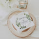 Cumprimente o seu clássico evento de casamento com este geométrico eucalipto verde deixa guardanapos de casamento. O design apresenta uma imagem geométrica dourada que enfeita folhas verdes de eucalipto.