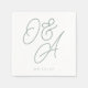 Uma bela design de guardanapo de casamento baseada em tipografia, com suas iniciais em letras verdes de eucalipto de tamanho excessivo, com sua data de casamento abaixo em letras clássicas de serifa.
