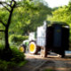 A chuva está prevista e o agricultor está trabalhando até tarde para conseguir a grama para a silagem.