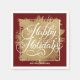 Felizes Feriados em letras brancas quentes em um fundo falso de folha de ouro, esses guardanapos vermelhos estão disponíveis em vários tamanhos.