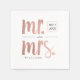 Estes guardanapos apresentam uma falsa letra de escrita de pincel de folha de ouro rosa que soletra o Sr. e a Sra. Personalize com a data do casamento e o sobrenome.