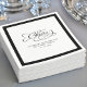 Comemore em estilo com estes guardanapos elegantemente minimalistas, com um gracioso "Cheers" em caligrafia, seguido de "Celebrar com o novo nome personalizado Sr & Sra." espalhado lindamente por duas linhas e uma elegante data formatado moderna. O nítido fundo branco e a tipografia negra atingem o equilíbrio perfeito entre o charme de eterno e o refinamento moderno. Apresentando uma sofisticada borda negra e um fundo preto sólido completa a estética limpa. Ideal para uma recepção de casamento sofisticada. 💍 Estes guardanapos personalizados trazem um toque sofisticado a cada torrada — desenhada para casais que abraçam a elegância subestimada e o talento tipográfico com uma dica de alegria comemorativa.