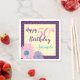 Bonito flores rosa e roxa com coquetel Feliz Aniversário espiral amarela. Personalizado com seu nome de família ou amigo. Personalizado para as suas cores favoritas!