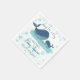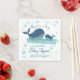 Guardanapos de chá de fraldas personalizados com design de baleia feliz e tipografia branca com letra de mão. Este design de aquarela fofo tem uma mamãe e uma baleia bebê nadando alegremente no oceano e decorada com bolhas oceânicas. O texto diz Ahoy! É um menino e você pode personalizar com o nome de sua mãe para ser e a data de chá de fraldas. Por favor, procure na minha loja convites e suprimentos de festas correspondentes.