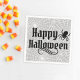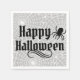 Estes guardanapos de papel bonitinho e assustador apresentam Feliz Halloween em letras decorativas com uma aranha preta e um padrão de teias brancas de aranha com cor de fundo de cinza (pode ser personalizado).